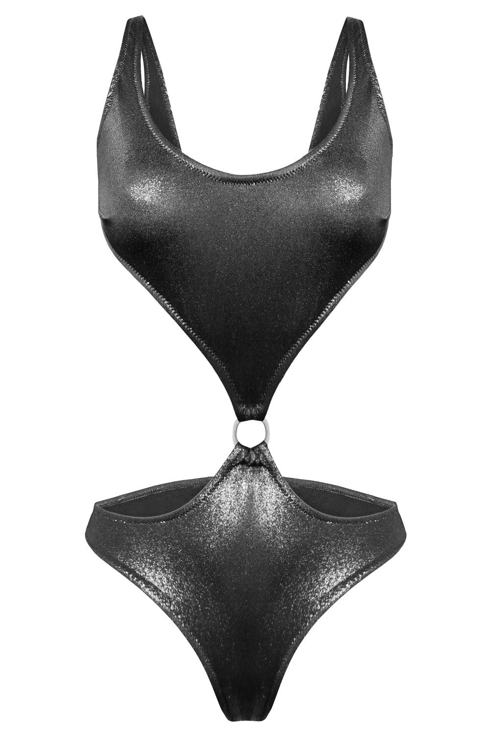 Titaniya Silver Black tank swimsuit will make any beach day a cosmic one. It features a U-neck, a back tie fastening, and cut-out details. Titaniya's cosmic shine shimmers beautifully in the sunlight. Also, the swimsuit is suitable for summer parties.