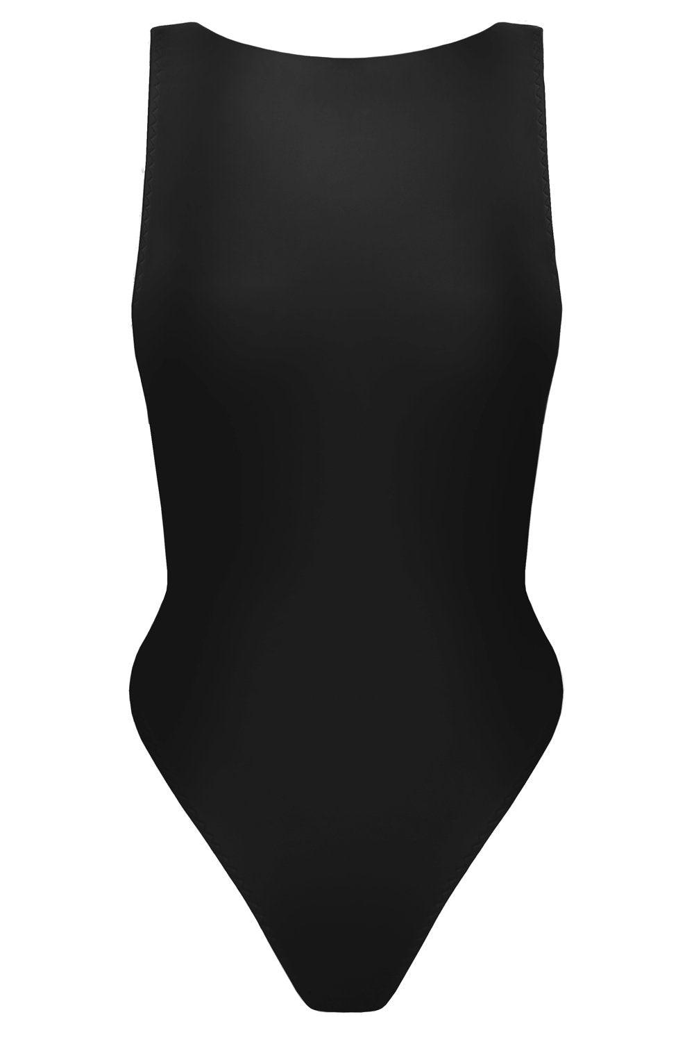 Basic swimwear to highlight you. The swimsuit's simple silhouette has timeless appeal and features a high neck and a slip bottom. The swimsuit is unique with its extra-high thigh cuts.