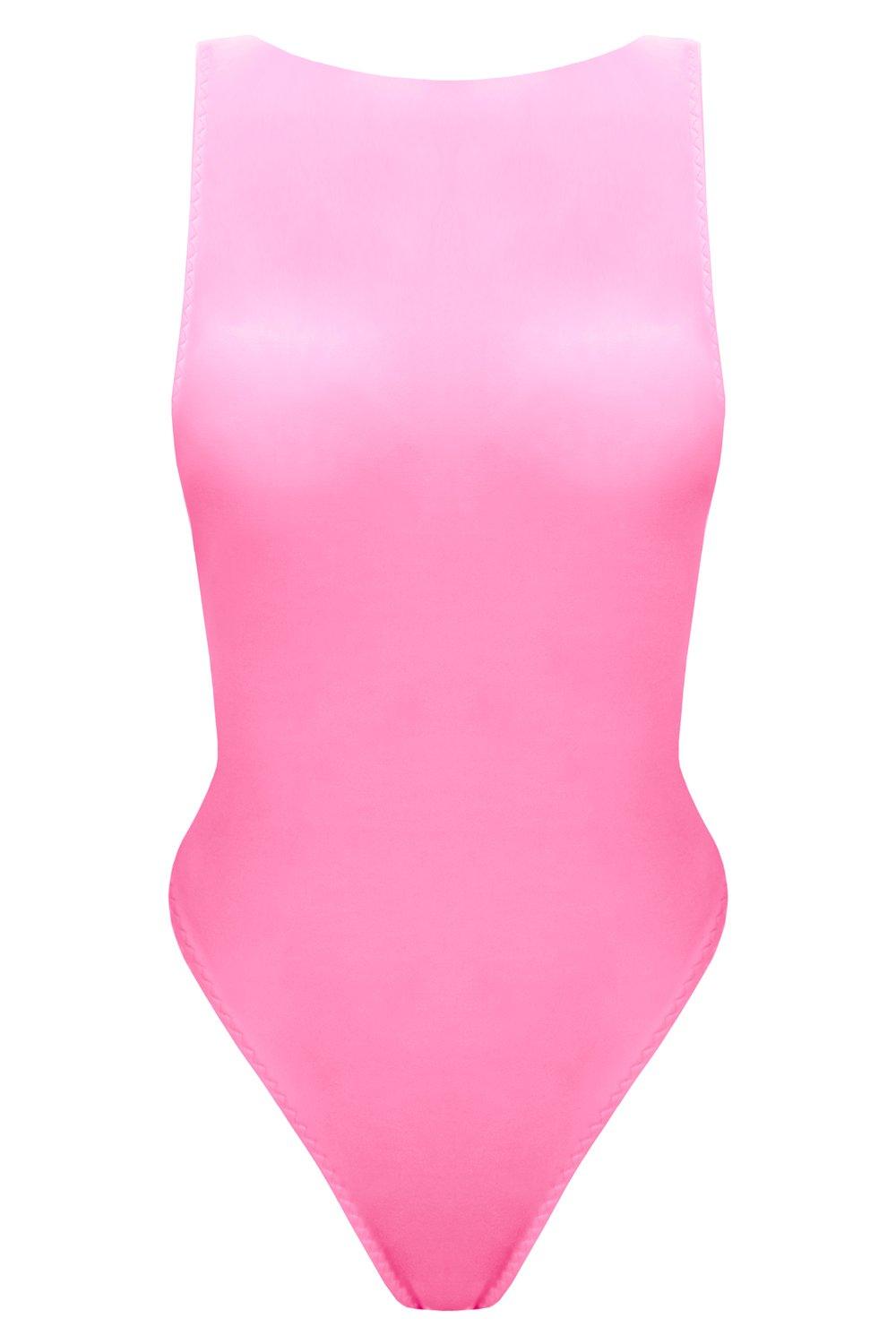 Basic swimwear to highlight you. The swimsuit's simple silhouette has timeless appeal and features a high neck and a slip bottom. The swimsuit is unique with its extra-high thigh cuts.