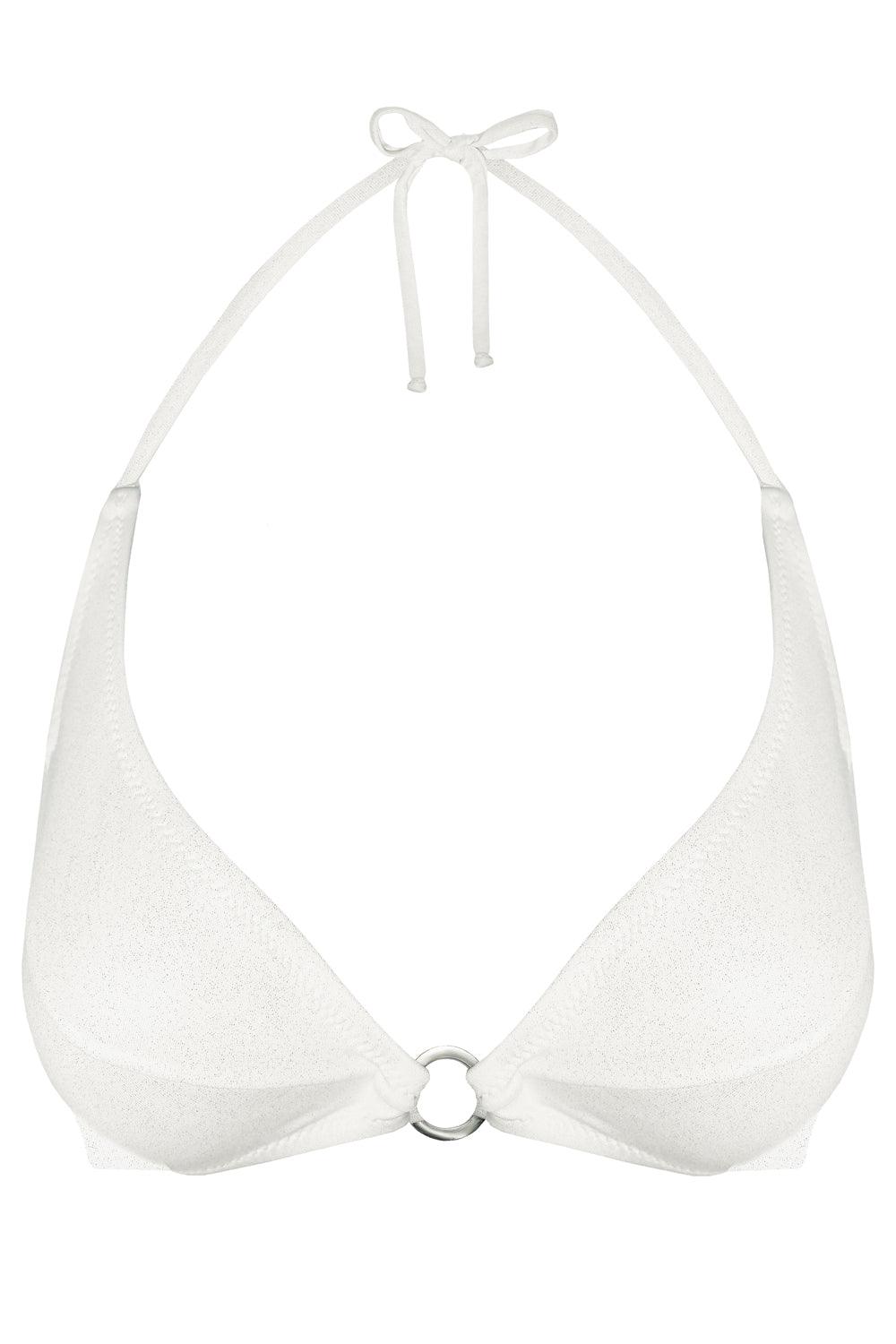 Titaniya Silver Ivory bikini top will make any beach day a cosmic one. The bikini top features a halterneck tie fastening, soft cups, and a decorative silver ring. Pair Titaniya's light shine with a sunny mood and some sunscreen for peak relaxation.