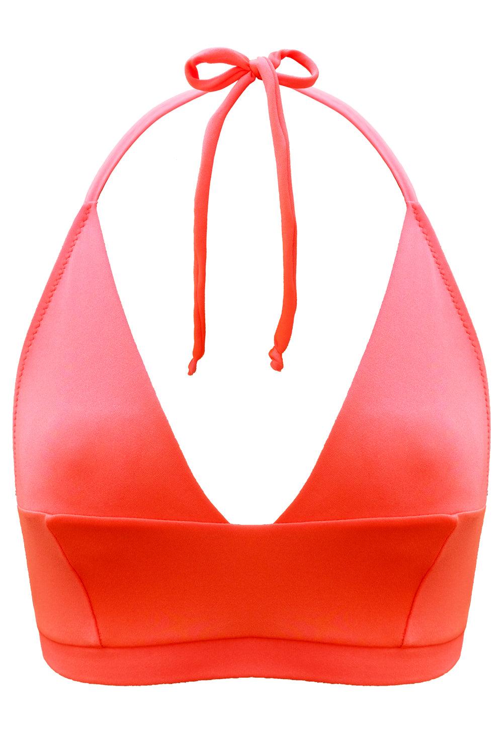 Bikini top design: foamless triangular cups, halterneck ties, plunging V-neck, different variants of straps position, transformer bikini top