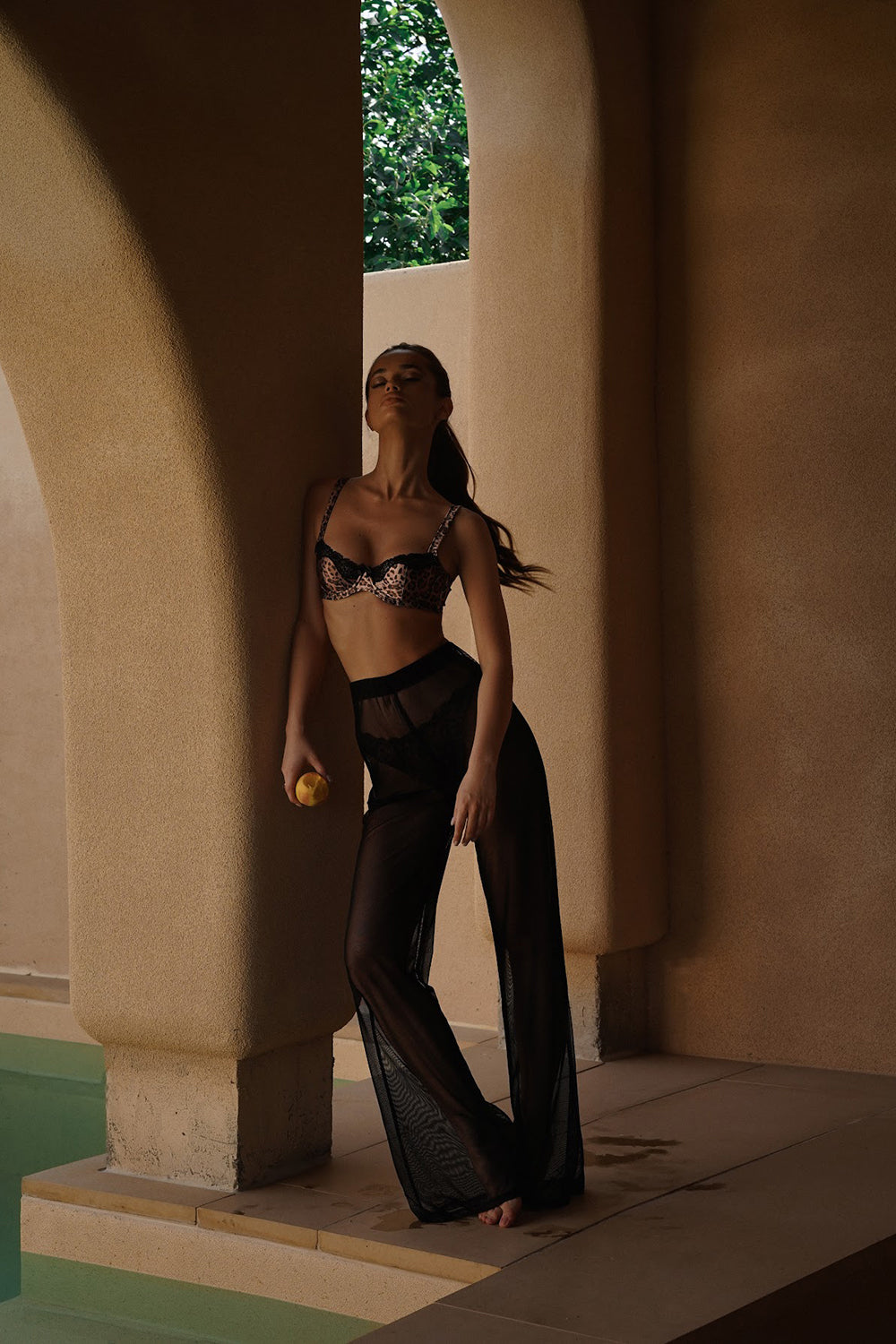 Bra design: underwired bra with unpadded cups, U-back, wide straps, designed with lace line