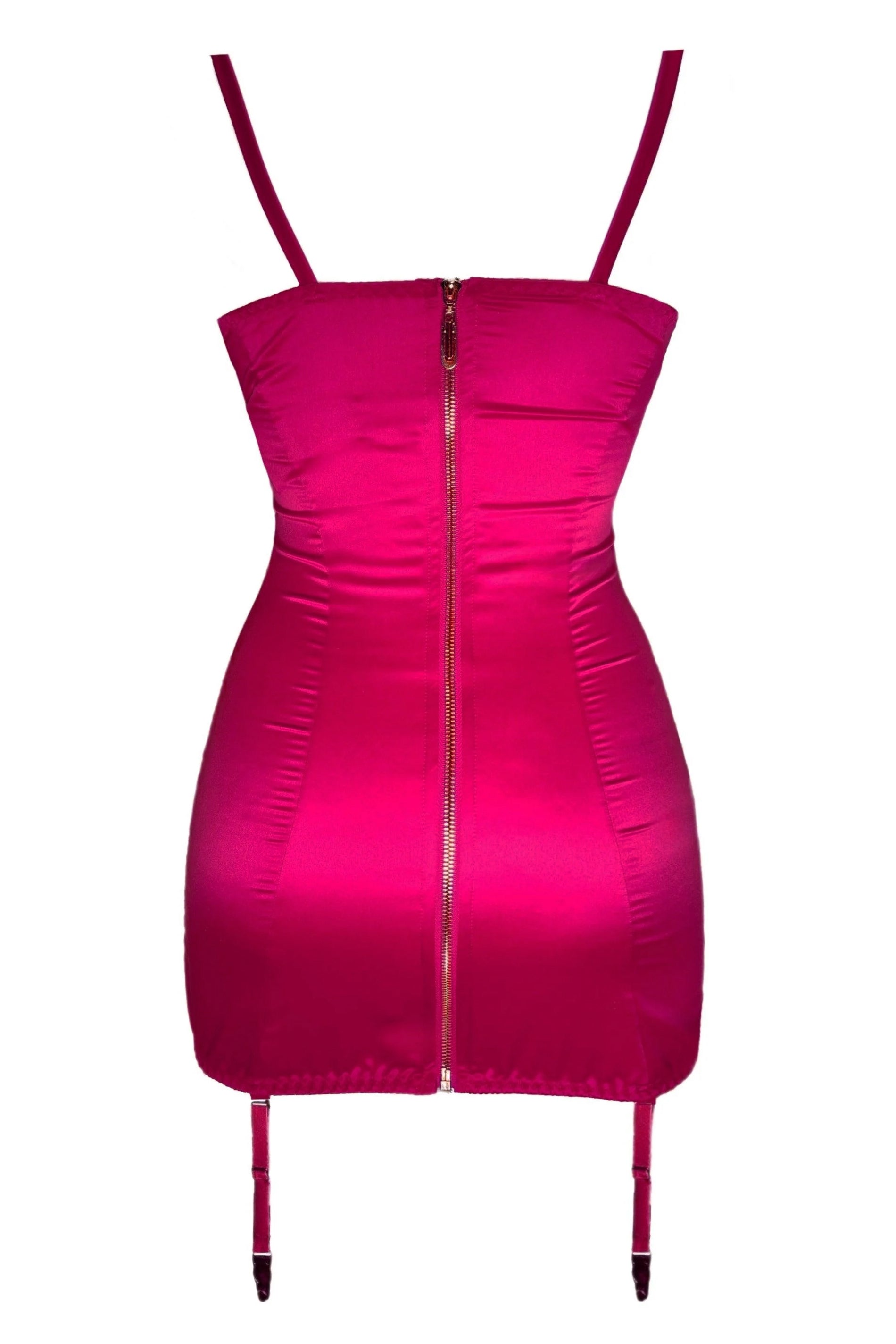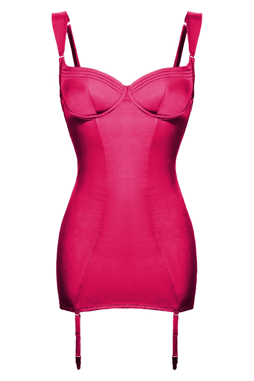 Garter dress design: adjustable shoulder and garter straps, fitted silhouette, sweethearts neckline, underwired cups, retro style