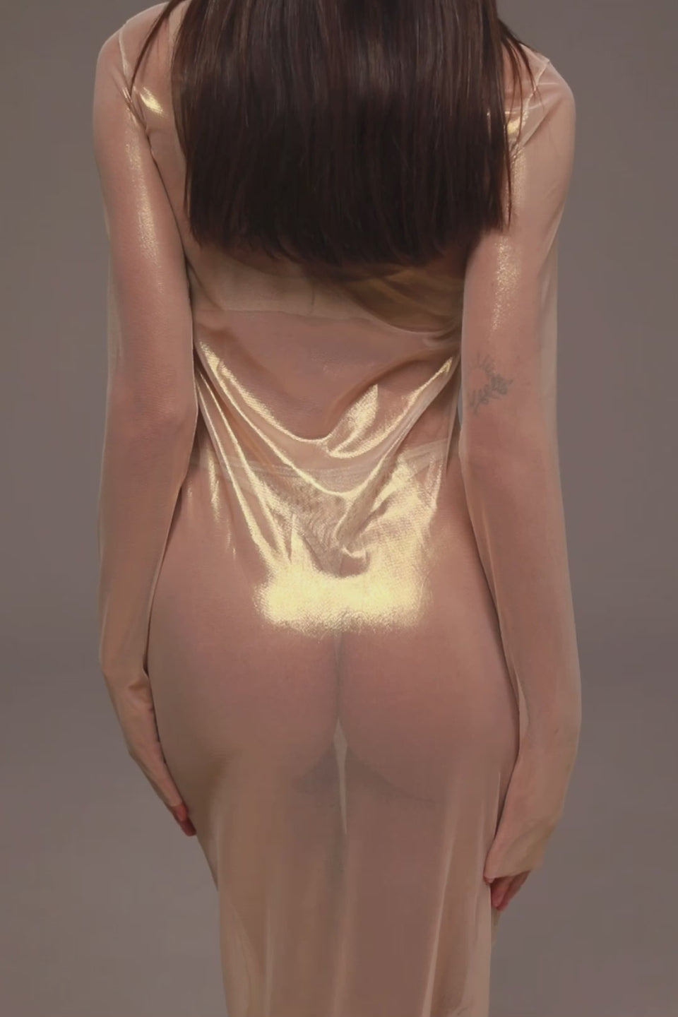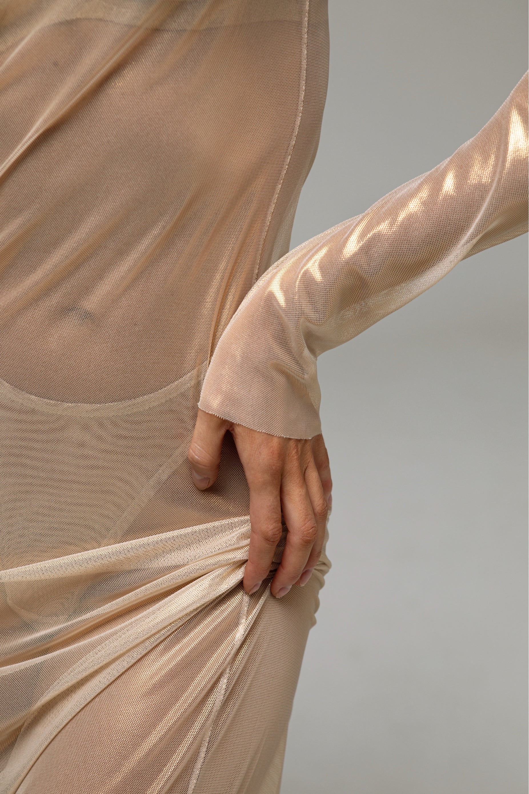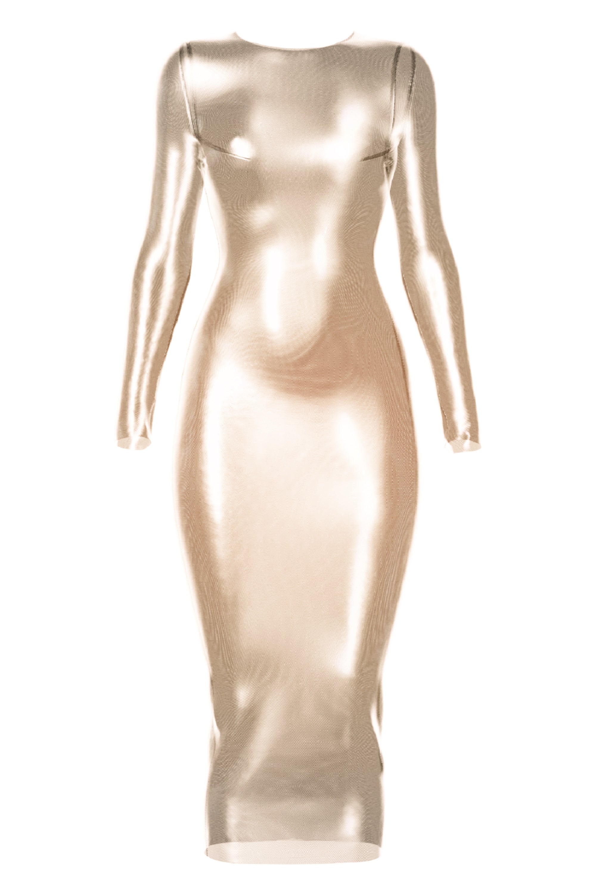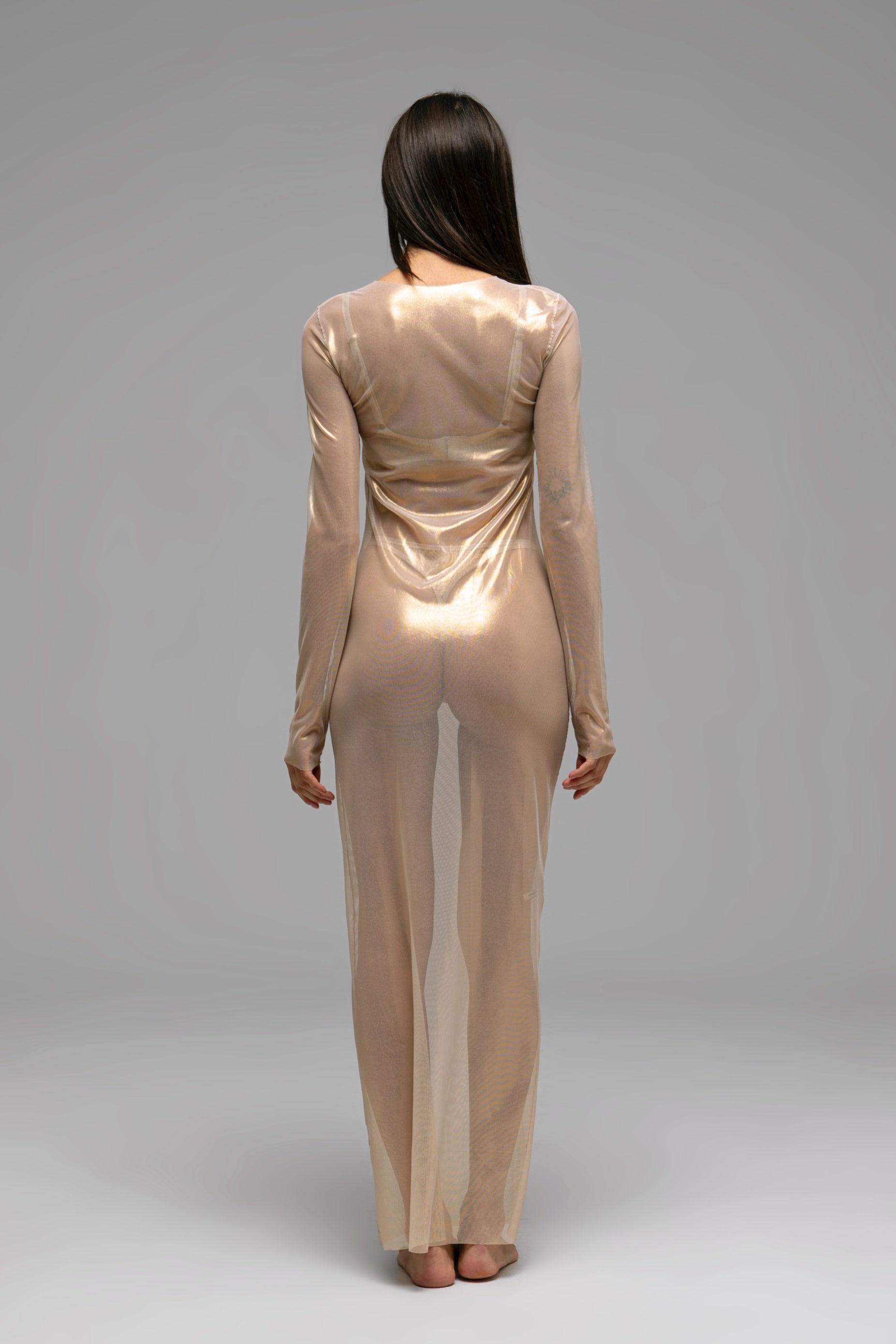 Design: fitted sheer long-sleeved long dress