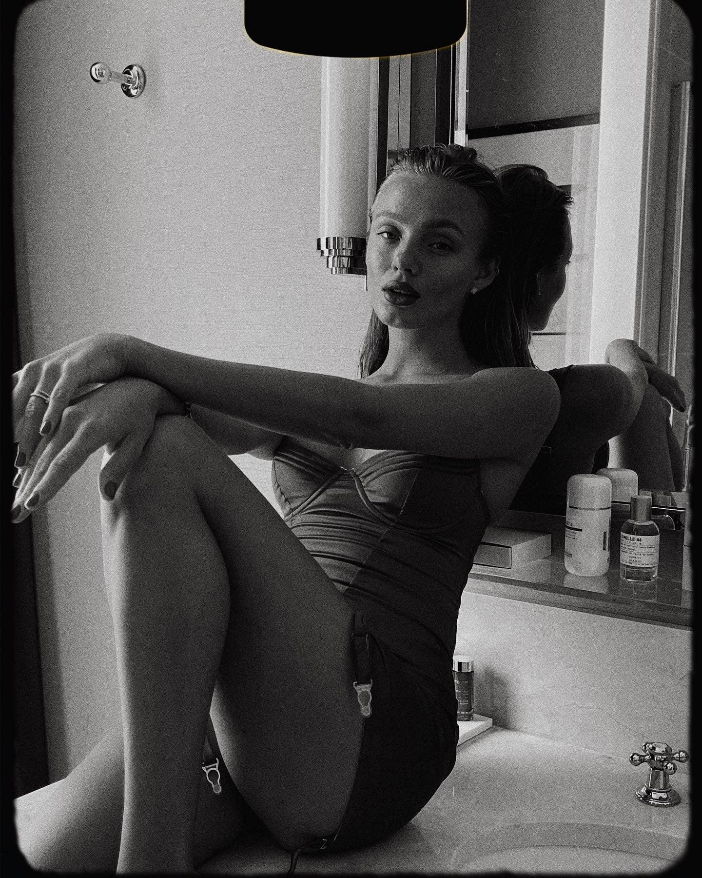 Garter dress design: adjustable shoulder and garter straps, fitted silhouette, sweethearts neckline, underwired cups, retro style