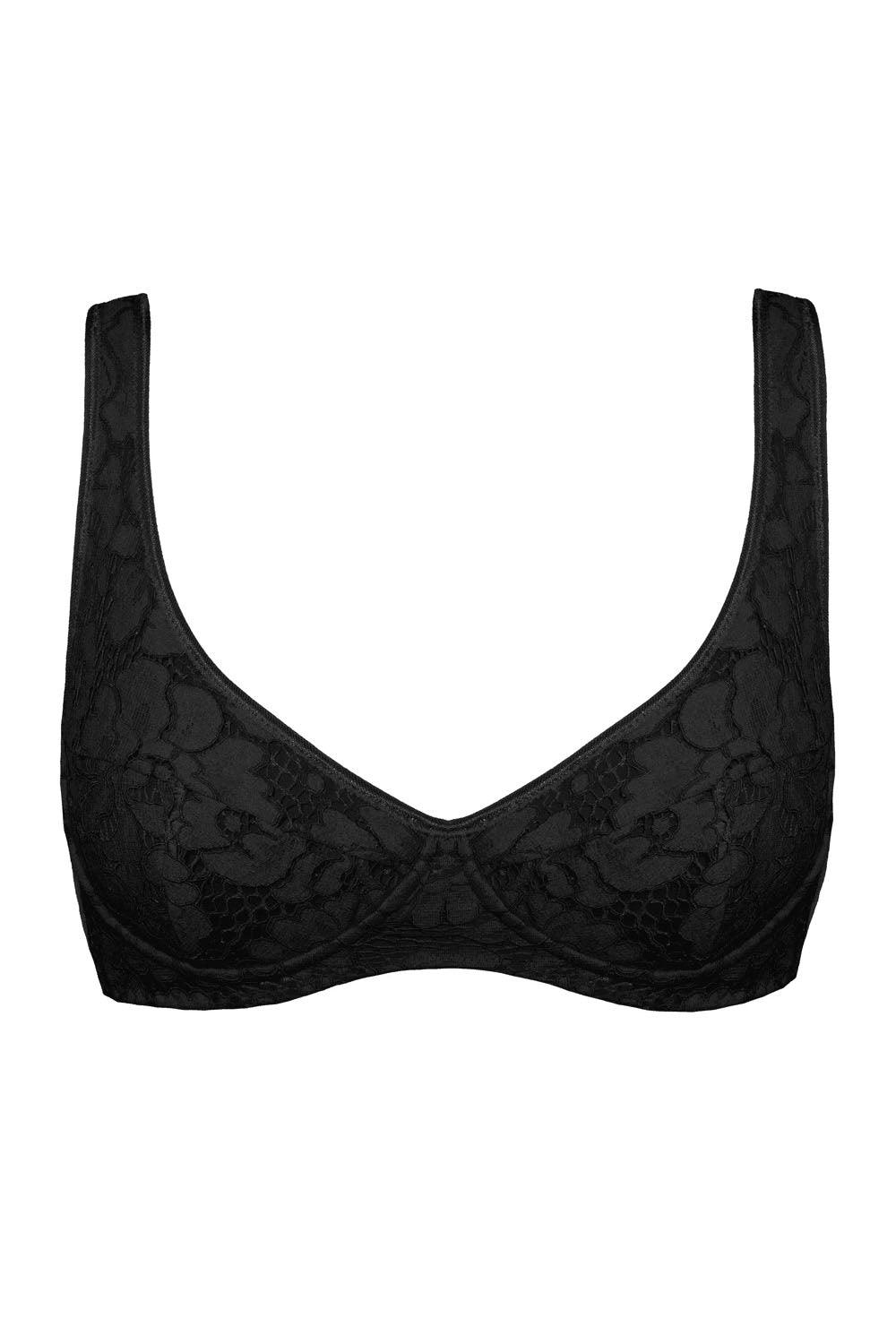 Bra design: underwired bra, plunge, wide straps, wide back