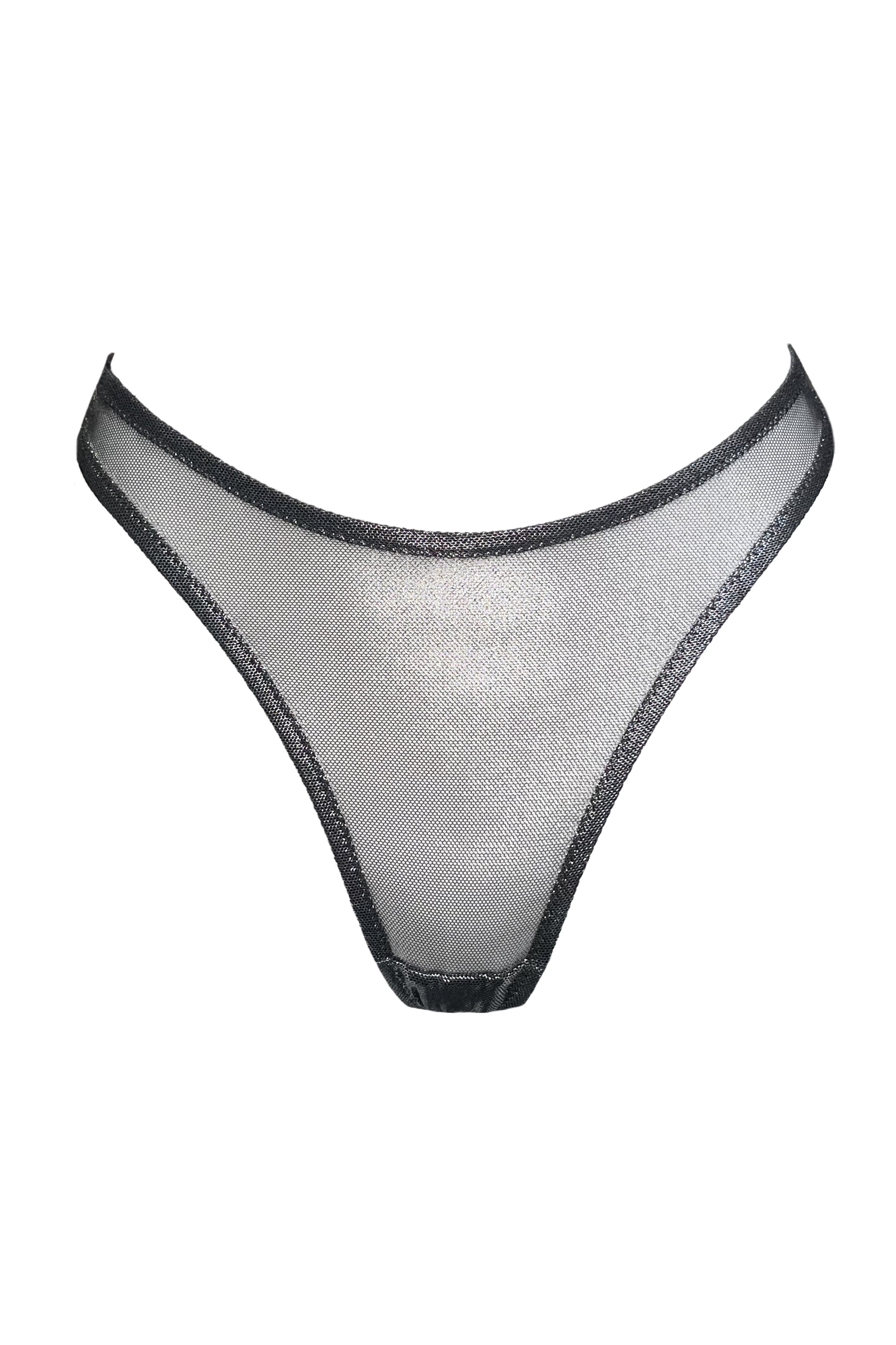 Ramonda black silver high waisted thongs
