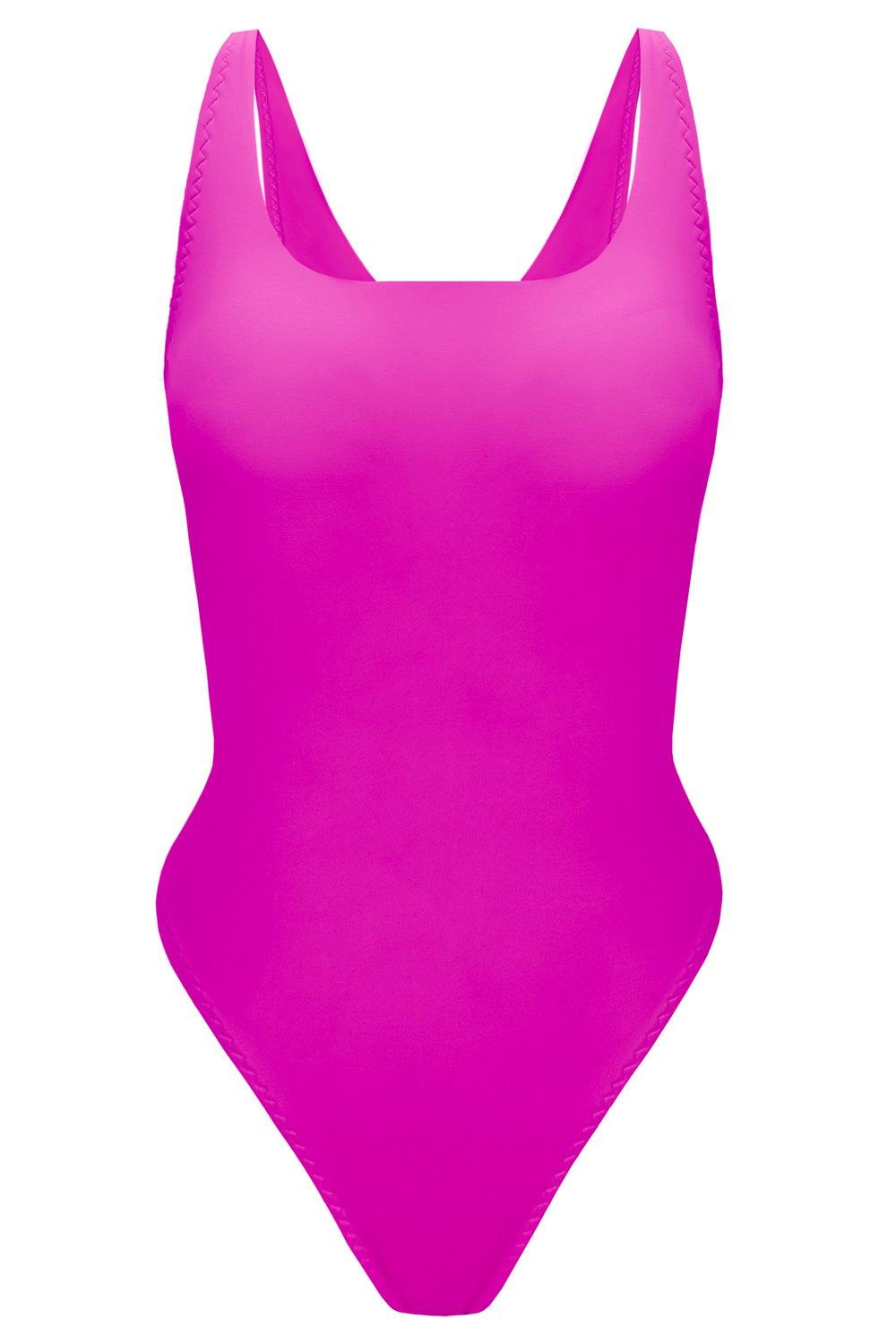 Swimsuit style: one-piece swimsuit, monokini, square neckline, slip bottom, soft cups, high hips design, tight-fitting