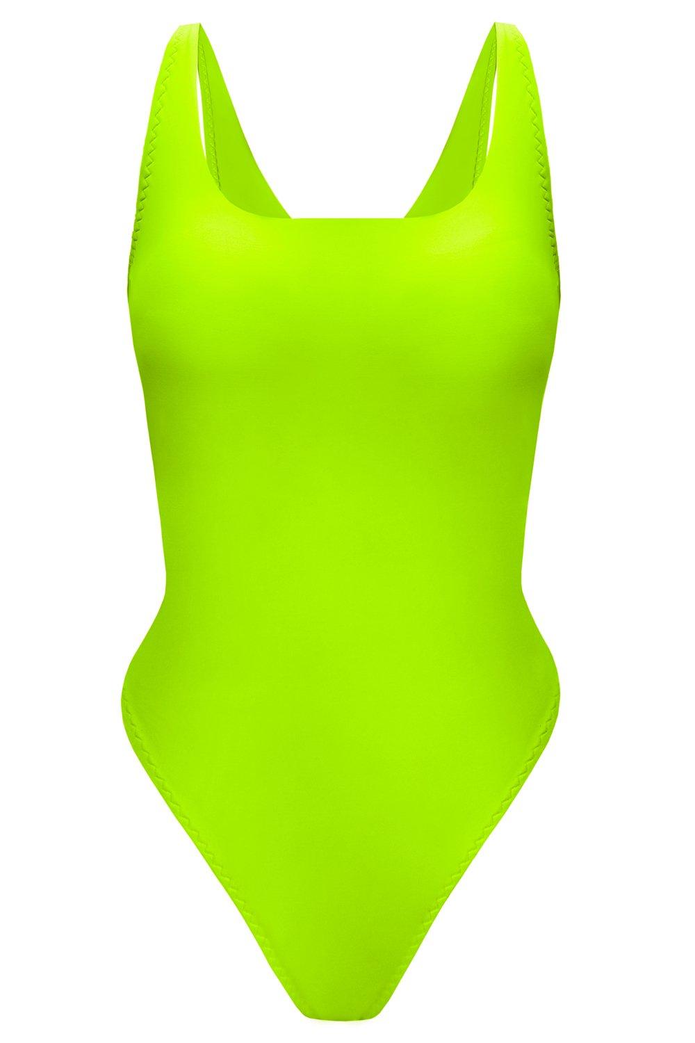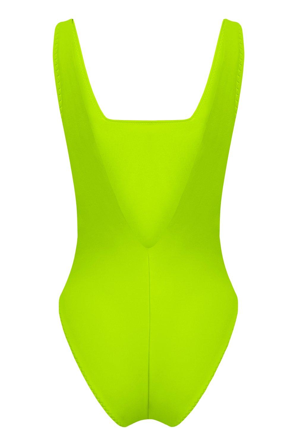 Swimsuit design: one-piece swimsuit, monokini, square neckline, slip bottom, soft cups, high thigh cuts design, tight-fitting