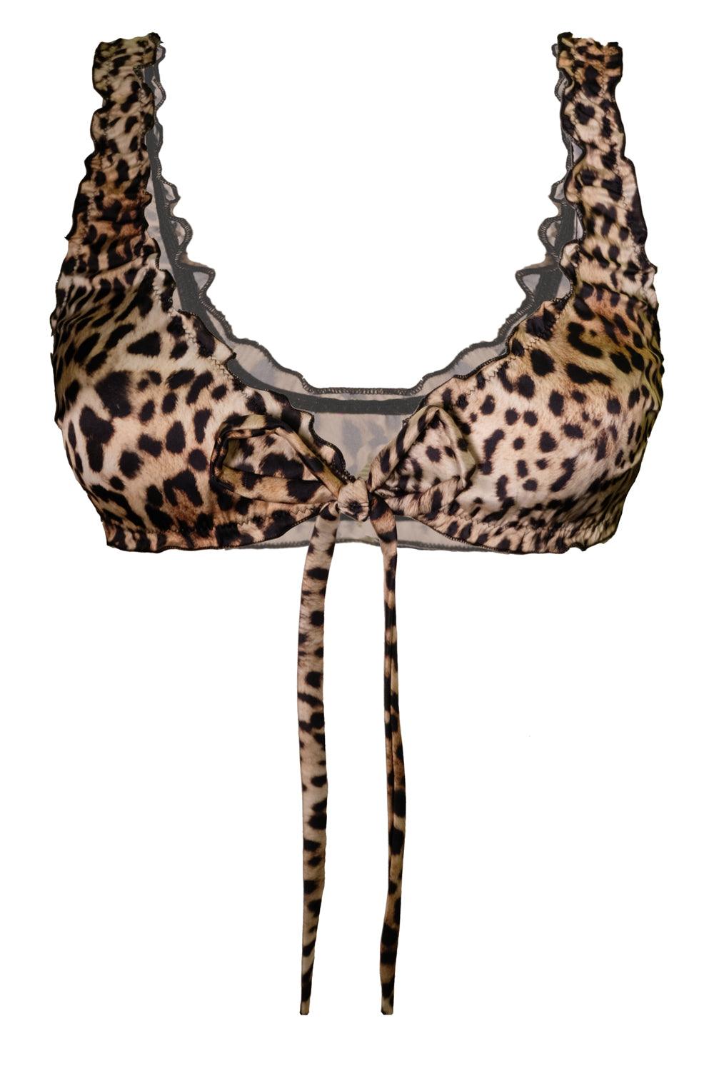 Candy Leo frilly bra is cut from soft silk and tied with a bow at the front. Perfect for cozy home days and summer parties.