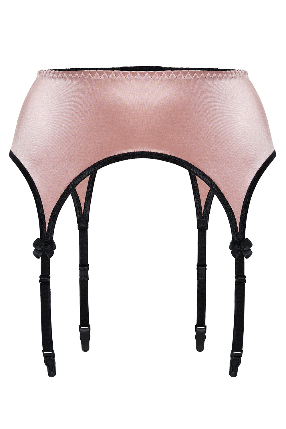 Garter belt design: mid waist garter belt with bows, four adjustable suspenders, clasps on suspenders for stockings