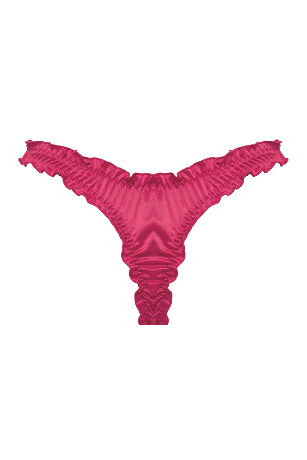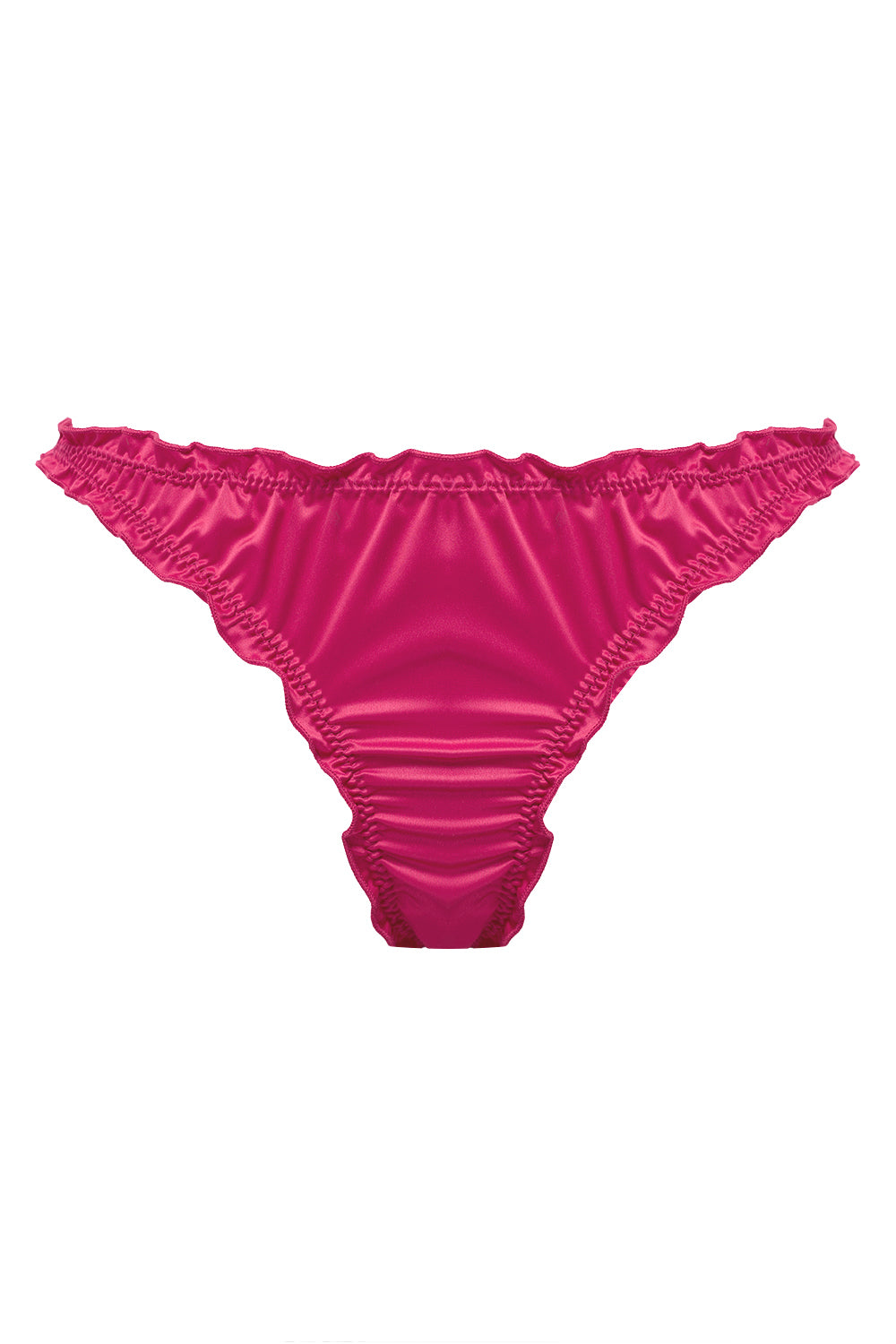 Candy fuchsia frilly panties are cut from soft silk and finished with a cute ruffled trim. You will love them for a flirty style and high waist with high thigh cuts.